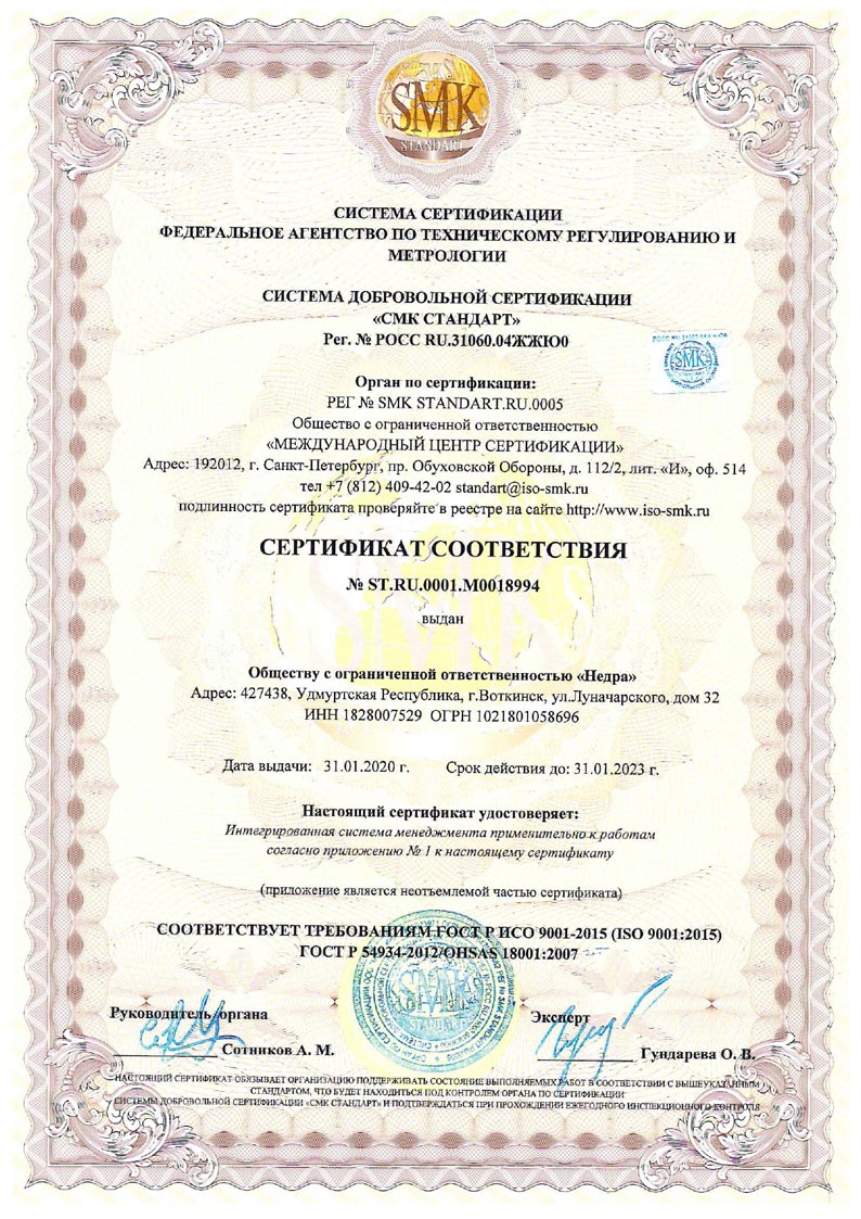 Публичное акционерное общество «Крымский содовый завод» выражает благодарность ООО «Недра» за проведение работ по экспертизе промышленной безопасности оборудования, работающего под избыточным давлением, газопроводов и газового оборудования, технических устройств; за выполнение технического диагностирования цистерн-содовозов. При проведении работ сотрудники ООО «Недра» показали высокий уровень профессионализма, а также качественное и своевременное выполнение договорных обязательств.